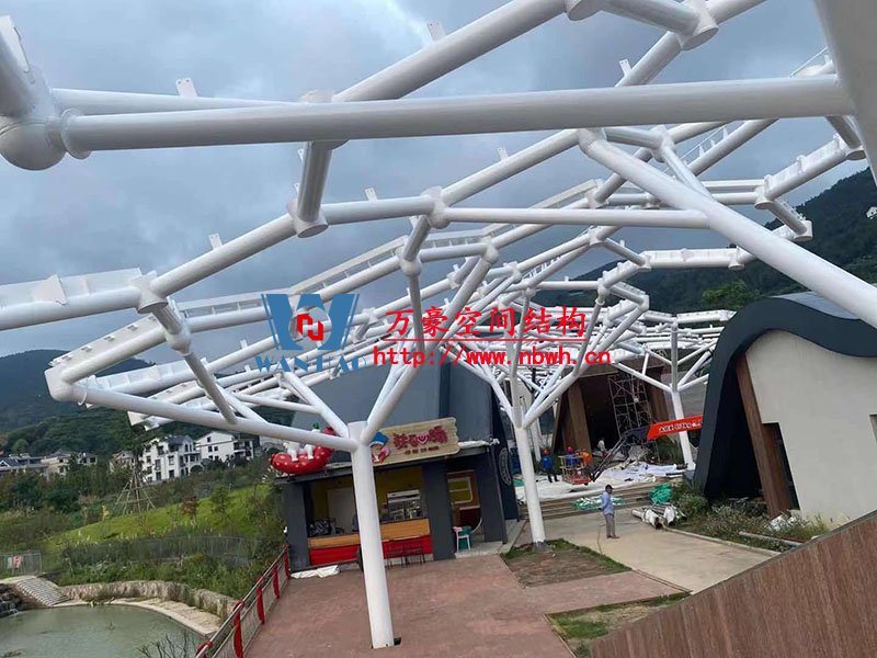 樂清鐵定溜溜樂園膜結構工程位于浙江省溫州市樂清市,項目鋼膜結構雨棚包括6號商業街蜂窩狀ETFE膜結構、檢票口PTFE膜結構、售票口PVDF膜結構。