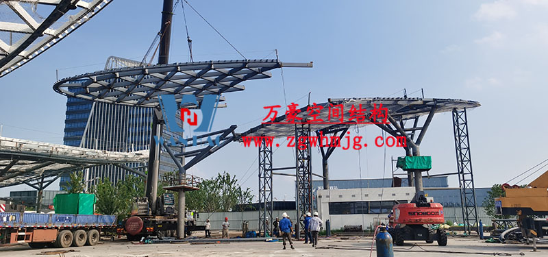 滬通鐵路張家港站地方配套工程-站前西側(cè)旅客集散區(qū)蝴蝶造型天幕工程擬建結(jié)構(gòu)為蘇州張家港高鐵站站前廣場(chǎng)蝴蝶造型雙曲面殼體膜結(jié)構(gòu),共分為大、小翅膀四部分。